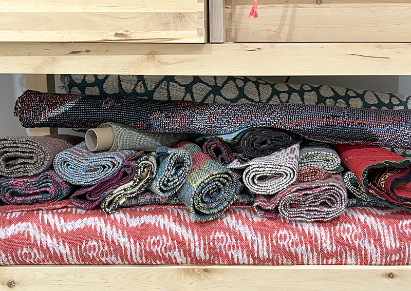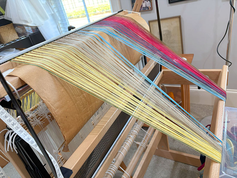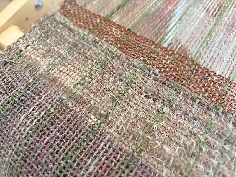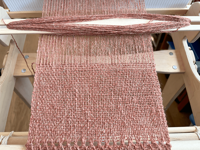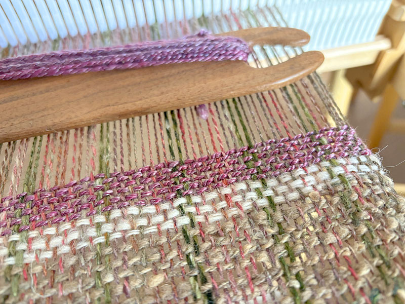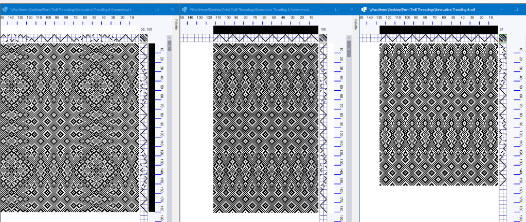 It’s an amalgamation on a simple point twill, no networking here, and I designed it with the help of TempoWeave on my Mac. See sidebar for more resources about amalgamation.