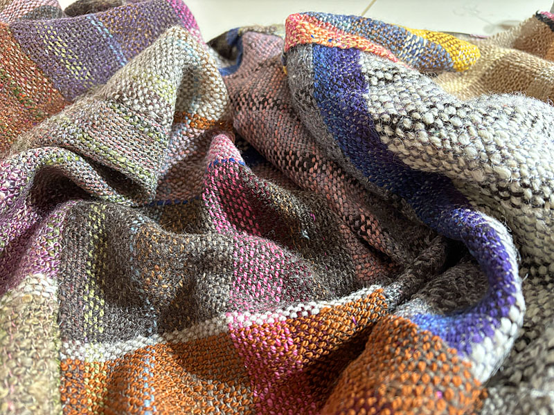 Yesterday I finished it, cut it off, and washed it. It dried quickly, as the sett is quite open (8 epi).